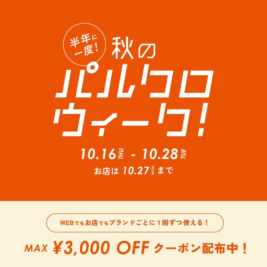 10月16日(木)0:00~10月28日(火)23:59の期間(※)、パルグループの各店舗&パルクローゼットオンラインストアにて半年に一度のお客様感謝フェアを開催いたします。