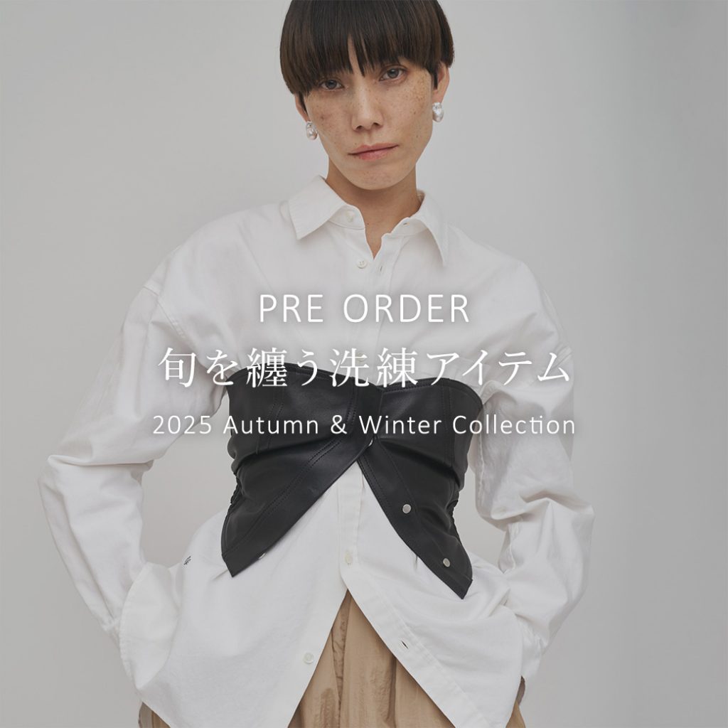 【PRE ORDER】旬を纏う洗練アイテム2025.11.18 先行予約リストに新作を追加しました。 カジュアルすぎず上品な抜け感を演出するバレルパンツや、とろみのある生地と華やかなドット柄が映えるボウタイブラウス、コーディネートにメリハリを添えるレザービスチェなど、今の気分にフィットするアイテムが揃いました。 ぜひ、ご覧ください。 詳しくはこちら>> RECENT NEWS 2025.11.18\予告/【5日間限定】先行予約アイテム10%OFFクーポン配信! 2025.11.18【PRE ORDER】旬を纏う洗練アイテム 2025.11.18【青山店】 SAMPLE SALE開催のお知らせ 2025.11.18《STAFF COLLABORATION》人気スタッフとのコラボベルトが登場! 2025.11.16【WEEKLY RANKING】今週の人気アイテムランキングTOP10!