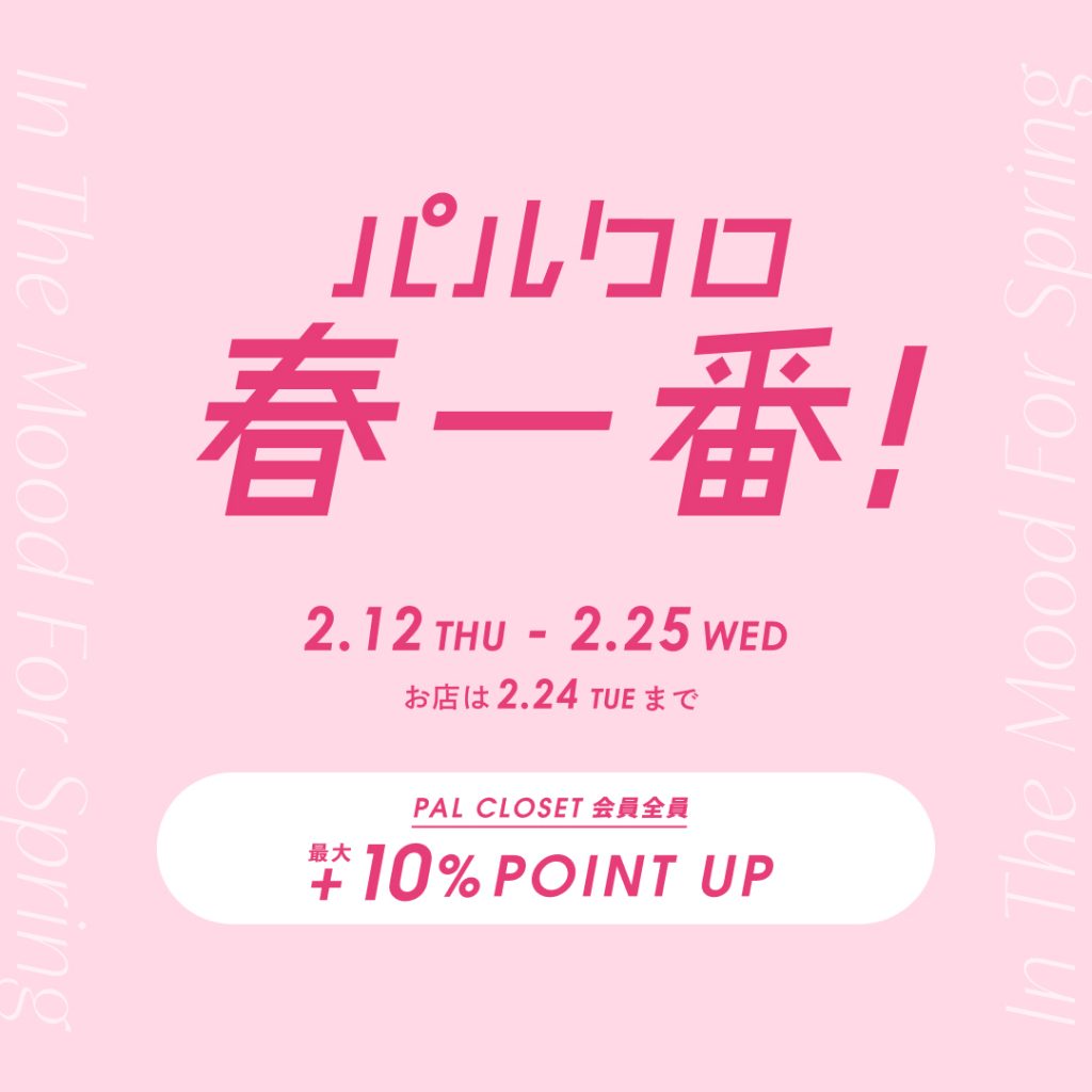 買う・見つける・貯める春。『2026 パルクロ春一番』開催!2026.2.12 いつもPAL CLOSETをご利用いただきありがとうございます。 2月12日(木)0:00~2月25日(水)23:59の期間(※)、パルグループの各店舗&パルクローゼットオンラインストアにて『2026 パルクロ春一番』を開催します。 ※店舗は2月12日(木)オープンから2月24日(火)クローズまで 詳しくはこちら>> RECENT NEWS 2026.02.12買う・見つける・貯める春。『2026 パルクロ春一番』開催! 2026.02.12《STAFF COLLABORATION》人気スタッフとのコラボパンプスが予約スタート! 2026.02.12STAFF COORDINATE × WEBカタログ掲載アイテムをチェック! 2026.02.10【LIVE】2/12(木)21:00~配信!『GEMINI(ゲミニー)』WEBカタログ公開!春夏の最新コレクションをご紹介 2026.02.10【PRE ORDER】遊び心を効かせた、今季のトレンドスタイル