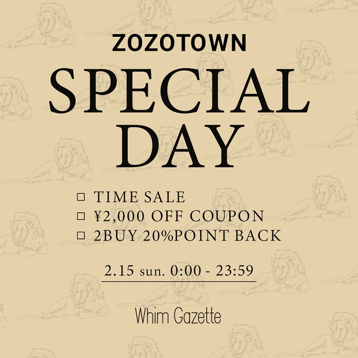 【ZOZOTOWN】 SPECIAL DAY2026.2.15 本日2/15(日)、一日限りのスペシャルイベントがスタート! 本日限りでお使いいただける¥2,000 OFFクーポンを配布いたします! さらにWhim Gazetteでは、一部商品がタイムセール価格に! さらにさらに!Whim Gazetteで2点以上お買い上げいただくと、購入金額の20%分のポイント付与まで! 予約アイテムも一部お得なスぺシャルな1日! 盛りだくさんのスペシャル特典が受けられるイベントをぜひ、お見逃しなく!! ZOZOTOWNはこちら>> RECENT NEWS 2026.02.15【WEEKLY RANKING】「パルクロ春一番」今週の人気アイテムTOP10! 2026.02.15【ZOZOTOWN】 SPECIAL DAY 2026.02.14【COMING SOON】まもなくお届けできる新作アイテム! 2026.02.12買う・見つける・貯める春。『2026 パルクロ春一番』開催! 2026.02.12《STAFF COLLABORATION》人気スタッフとのコラボパンプスが予約スタート!