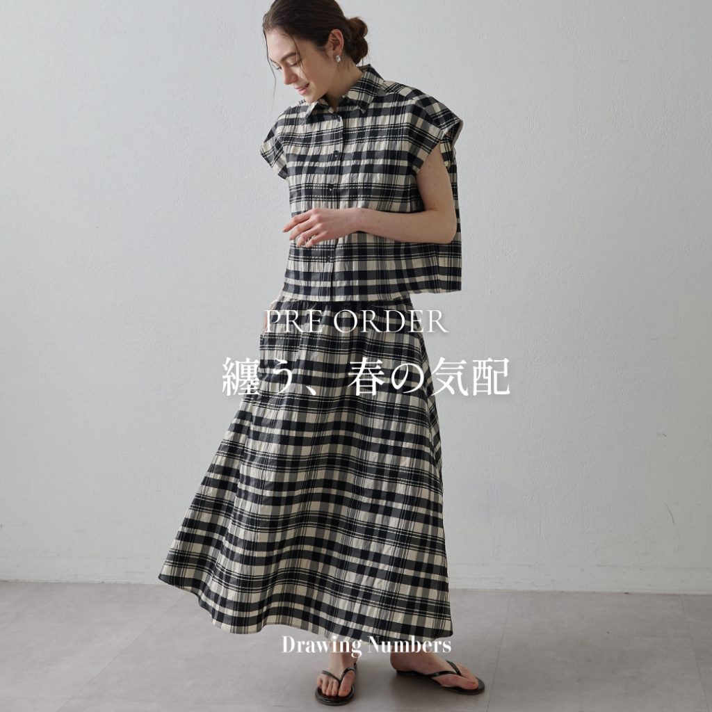【Drawing Numbers】先行予約がスタート!!2026.2.19 先行予約リストに新作を追加しました。 春のワードローブに欠かせない、レースを使用したシャツとパンツに加え、スタイルに華を添えるチェック柄のセットアップが2型登場。 さらに、昨年ご好評いただいたピグメントキュプラシリーズも揃います。 ぜひ、ご覧ください。 詳しくはこちら>> RECENT NEWS 2026.02.19【Drawing Numbers】先行予約がスタート!! 2026.02.19【5日間限定】予約アイテム10%OFFクーポン&+10%ポイント還元Wキャンペーン 2026.02.17【LIVE】2/19(木)21:00~配信!予約10%OFFキャンペーンおすすめアイテムのご紹介 2026.02.17【Drawing Numbers】先行予約がスタート!! 2026.02.17【予告】予約アイテム10%OFFクーポン&+10%ポイント還元Wキャンペーン